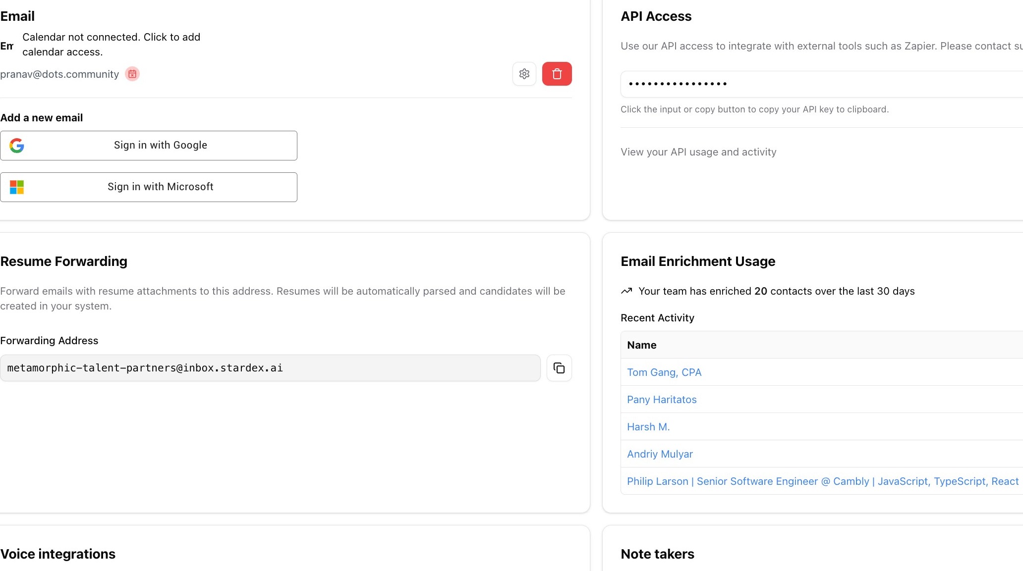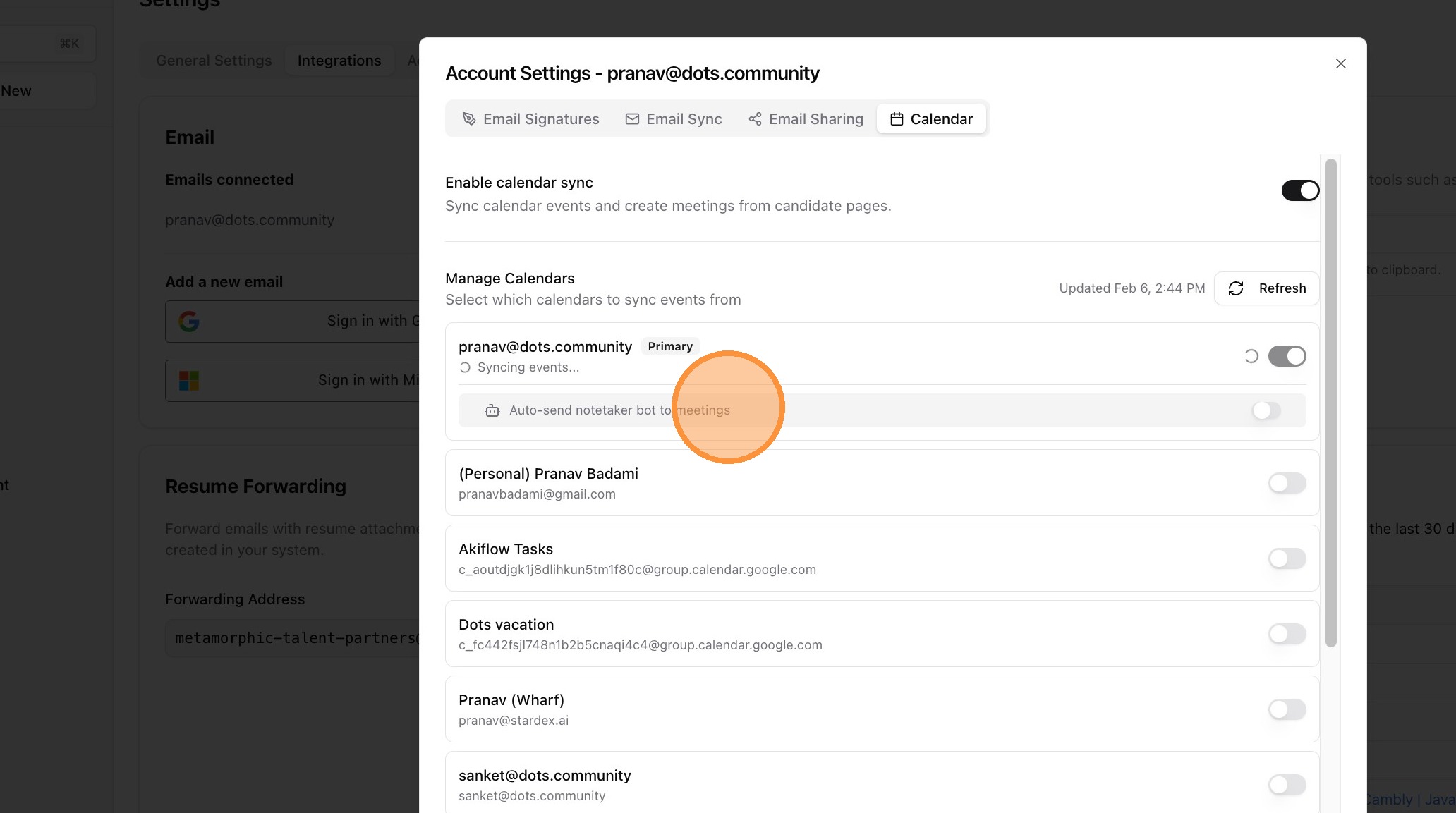 7\. Click "Auto-send notetaker bot to meetings"! This will make sure that the Stardex bot joins your existing meetings.