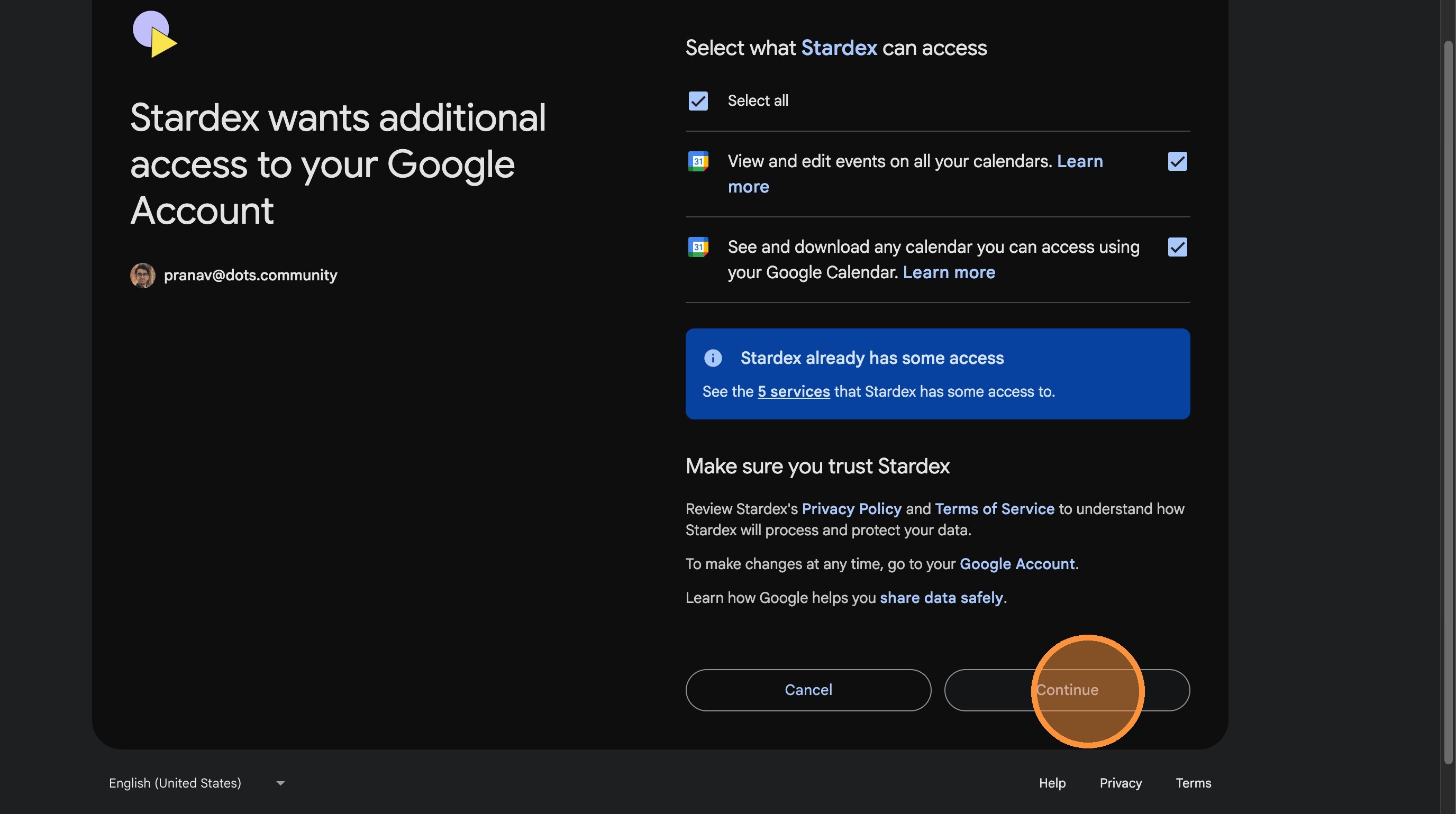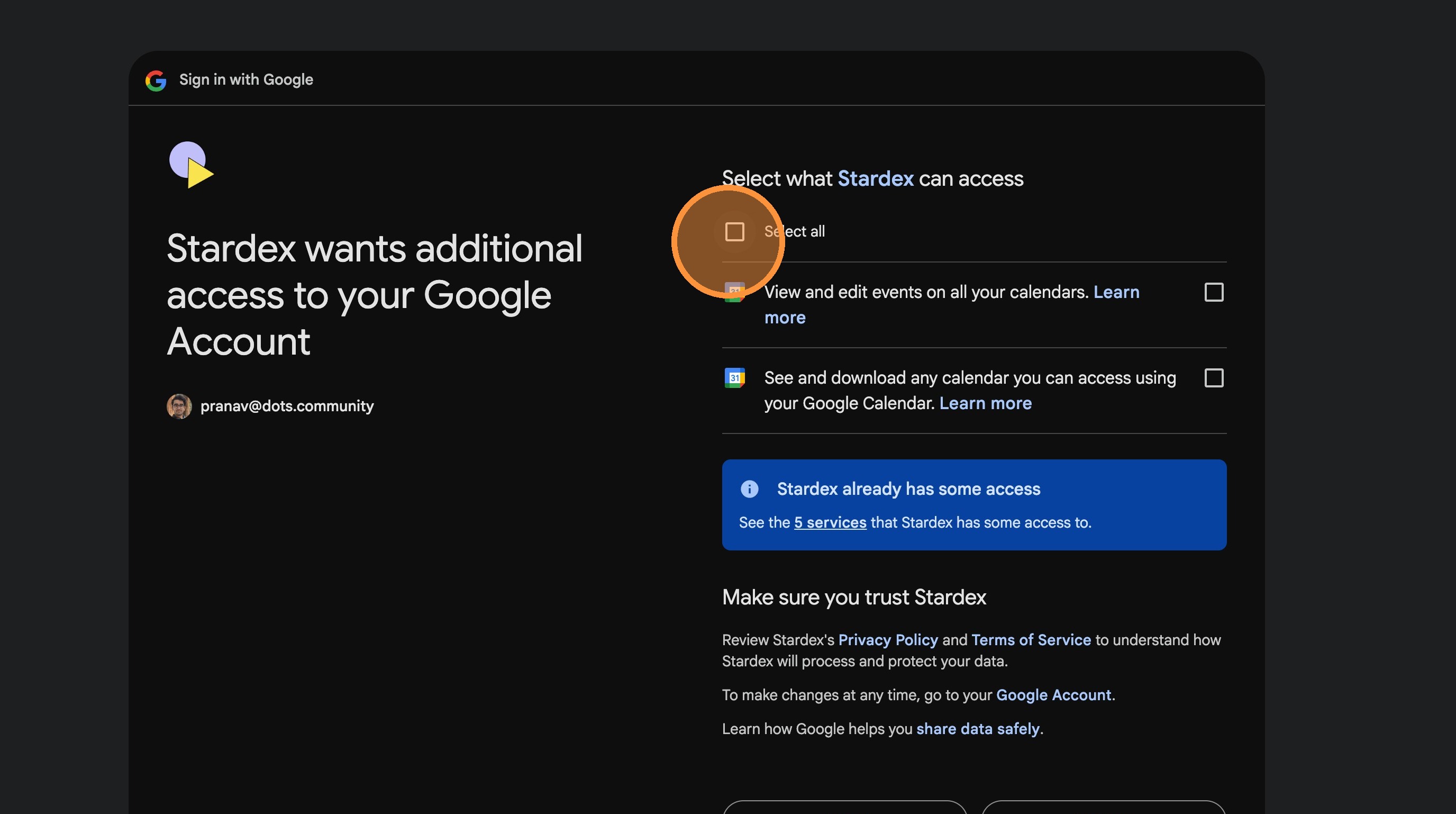 5\. Click this checkbox. Make sure to provide calendar access here!