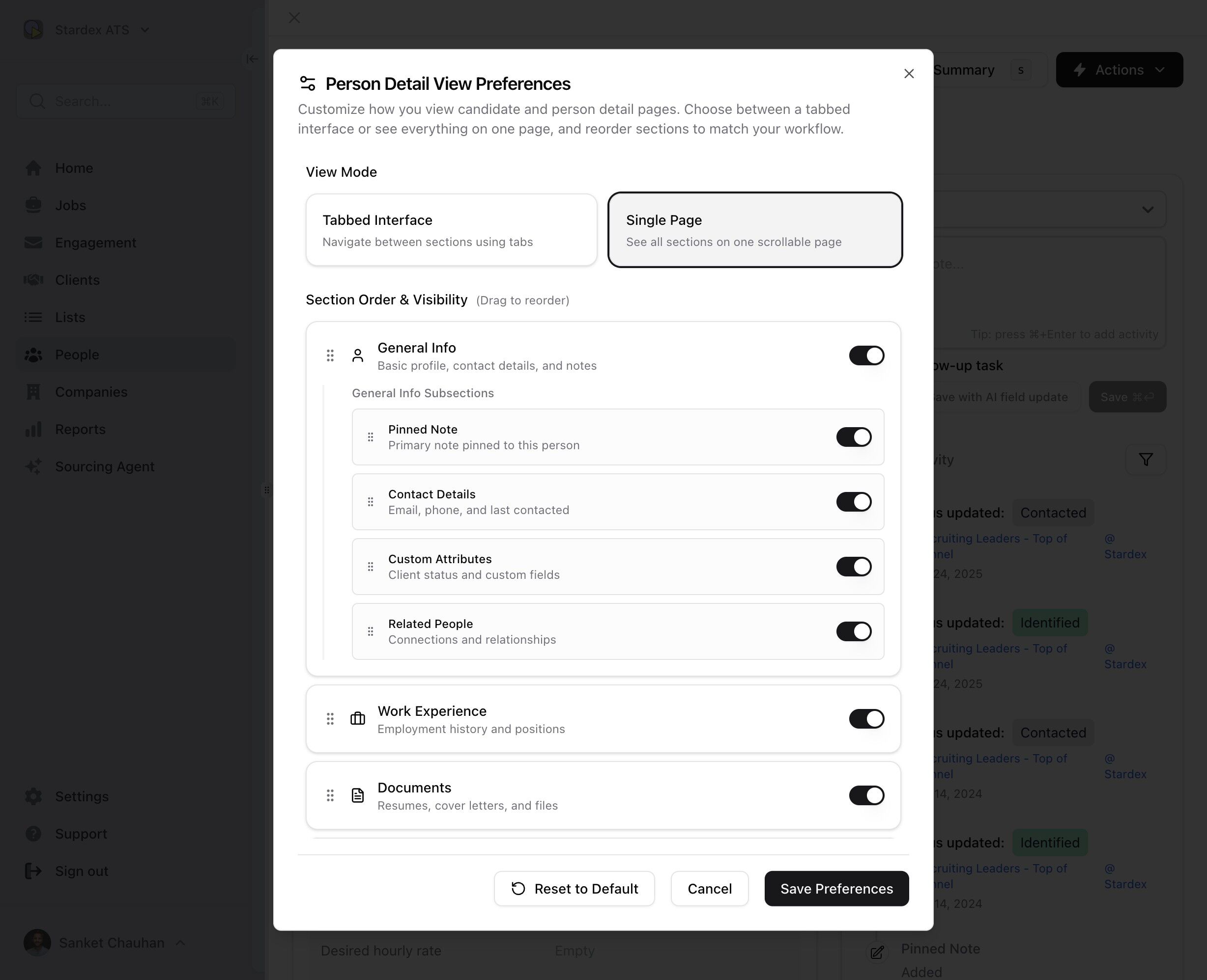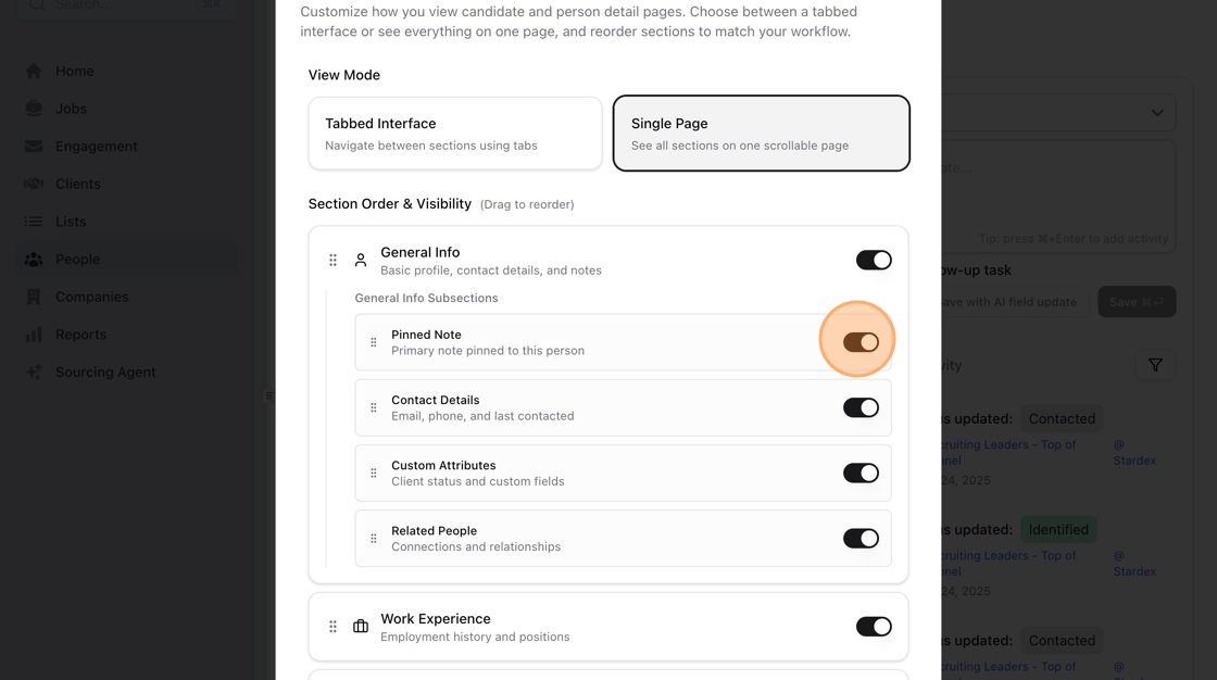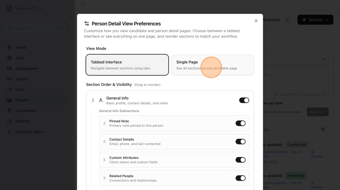 Stardex now allows you to customize what elements you want to see on a profile page. Default is a tabbed view which is accessible through keyboard shortcuts. If you want everything in one view, you can click Single page, and display the items you care the most.