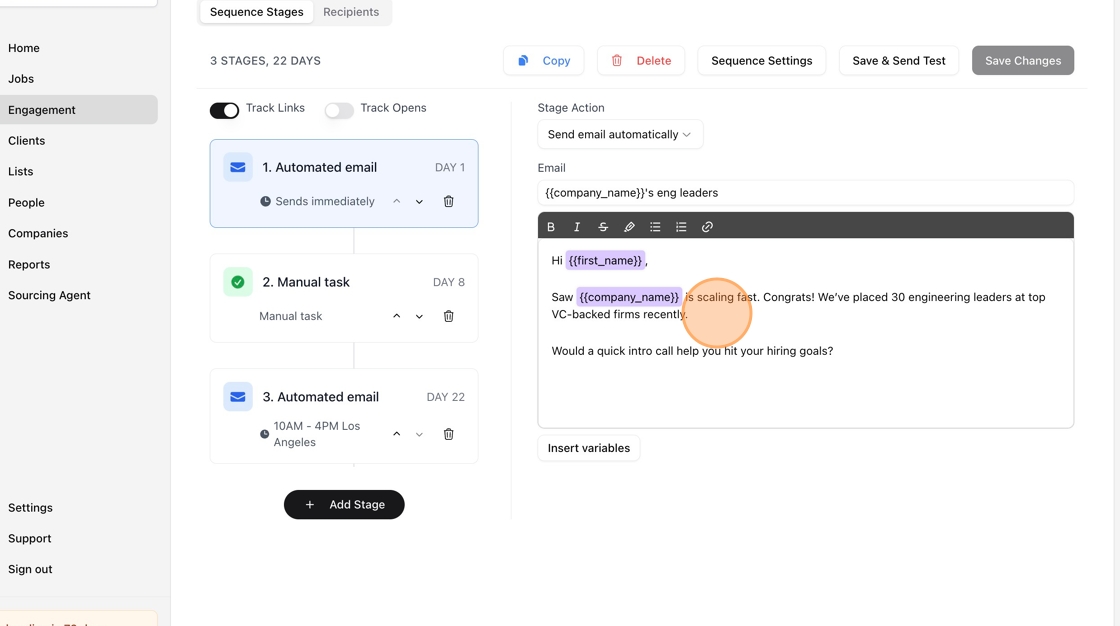 - Edit your campaign. You can insert custom variables using "Insert variables"\